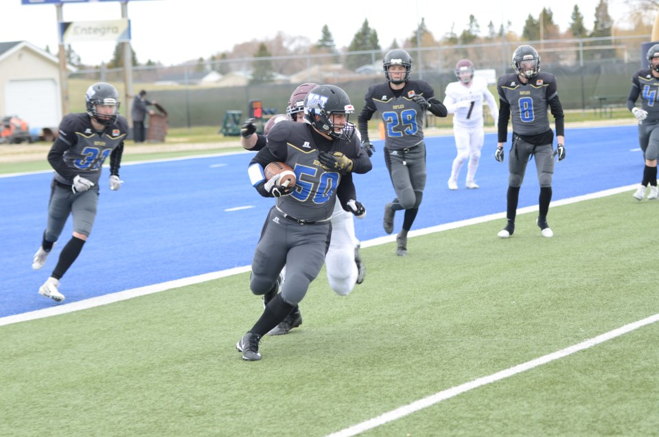 By: Mike Still (@mikestill94) Feature photo: Rifles linebacker Barret Mueller records an interception in the second half against the Auggies....