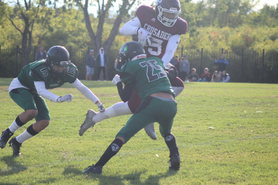 By: Mike Still (@mikestill94) Feature photo: St. Paul's 1 running back/punter Te Jessie attempts to lunge past Vincent Massey defensive...